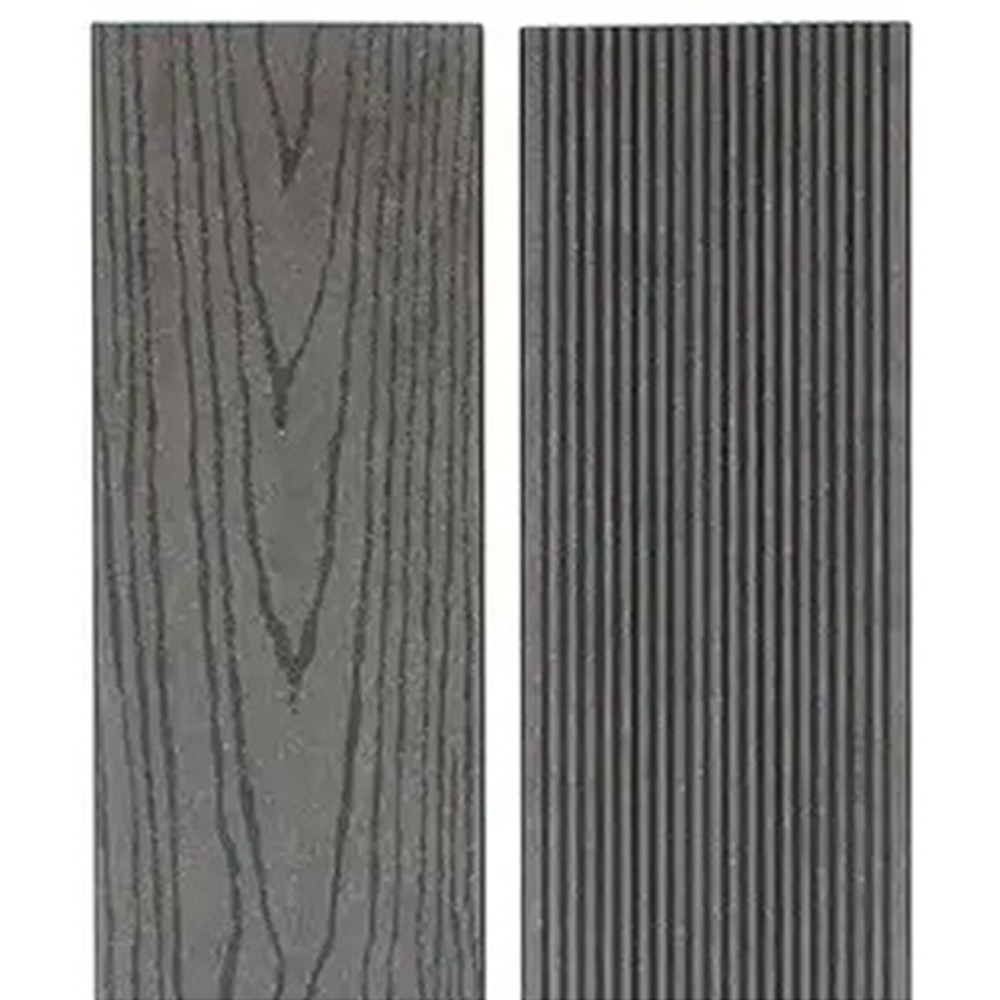 Террасная доска из древесно-полимерного композита с добавлением минералов (МДПК) 140 мм серого цвета состоит из натуральной древесной муки, минералов, полимеров, также применяются красители и прочие добавки, в результате смешивания которых образуется износостойкий материал, обладающий огнеупорными и влагозащитными свойствами. Благодаря добавлению минералов доска прекрасно выдерживает воздействие атмосферных осадков по сравнению с классическим составом ДПК.